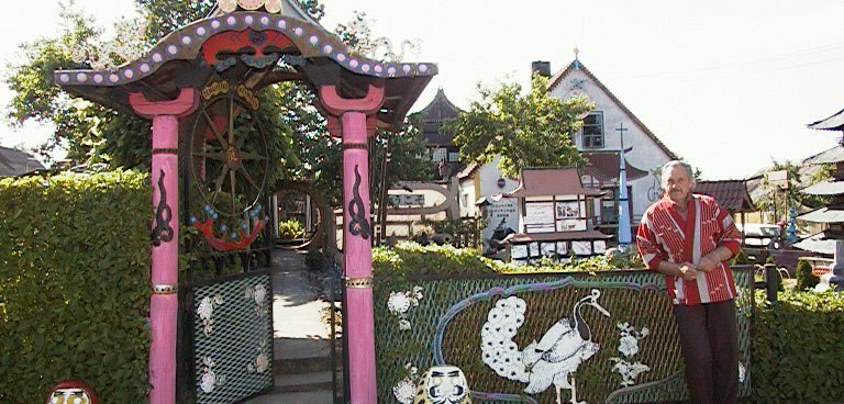 Dailininko juvelyro A. Jonušo rankomis sukurta tekančios saulės šalies salelė – žemaitiška–japoniška-kiniška sodyba–muziejus. Lankytojai čia gali pamatyti seniausios pasaulyje Horiudži šventyklos pagodos maketą, No teatro kaukės Okame kopiją, kabukio, japonų teatro, sceninius vaizdus. Fudži kalno papėdėje arbatos gėrimo namelis, budos Amidos, šv. vienuolio skulptūros ir kiti senosios Japonijos kultūros simboliai. Sodyboje-muziejuje skirtas kampelis ir Kinijai. Čia galite pamatyti apie 30 Kinijai būdingų pastatų maketų: Konfucijaus šventyklą, baltąją Pekino pagodą, Tibeto Potalos rūmus ir kt. Buvusiame medžiotojų namelyje įrengtos ekspozicijos Dievo Krėslo miško partizanams. Lankytojams pageidaujant, galima apsilankyti ir japoniškame kambaryje, susipažinti su meniniu gintaro apdirbimu.