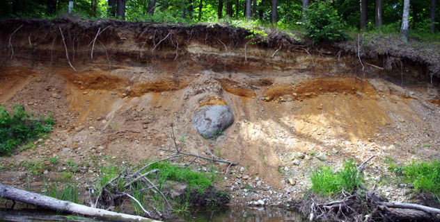 Pirmą kartą atodanga kairiajame upės krante užfiksuota 2013 m. liepos mėn. pradžioje. Atodangos ilgis apie 100 metrų, aukštis - apie 6 metrus. Atsidengusiuose sluoksniuose galima rasti fosilijų.
