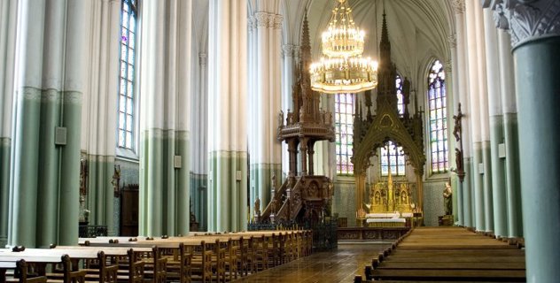 Bažnyčios statyba vyko 1866-1885 metais. Pirmasis architektūrinis projektas buvo parengtas Frydricho Gustavo fon Šachto, o vėliau tobulinamas austrų architekto Georgo Vernerio. Pasakojama, kad šventovės statyba kainavusi daugiau kaip milijoną carinių aukso rublių. Bažnyčios fundatorius buvo grafas Reinoldas Tyzenhauzas, tačiau 1880 metais jam mirus, darbus tęsė ir užbaigė jo sesuo Marija Tyzenhauzaitė - Pšezdziecka.