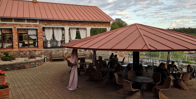 Vasarą galima pasinaudoti lauko terasos malonumais. Stebėti saulėlydį arba tiesiog pasimėgauti puikia aplinka: lauko tvenkinys, takeliai pasivaikščiojimui, alpinariumai, gėlynai. Išpuoselėtoje aplinkoje yra galimybė surengti santuokos ceremoniją ar fotosesiją.