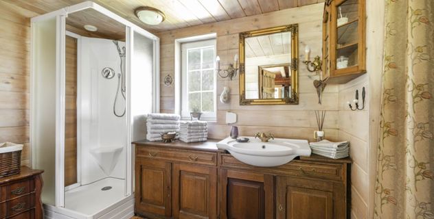Kaimiško stiliaus rąstinis pirties namelis tarsi įaugęs į natūralų gamtos peizažą. Priepirčio kambarys pritaikytas nedidelei kompanijai. Po pirties galima patogiai klestelėti į minkštus odinius krėslus.