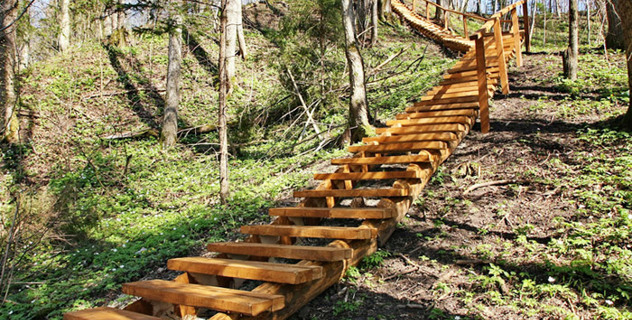 Tako ilgis 0,9 km. Jis prasideda ir baigiasi stovyklavietėje „Lakštingalų slėnis“. Eidami taku užkopsime ant aukšto ir stataus skardžio-atodangos, nuo kurios atsiveria vaizdas į „Lakštingalų slėnį“. Ant atodangos yra įrengta poilsiavietė, kurioje galima atsipūsti po kopimo laiptais.
