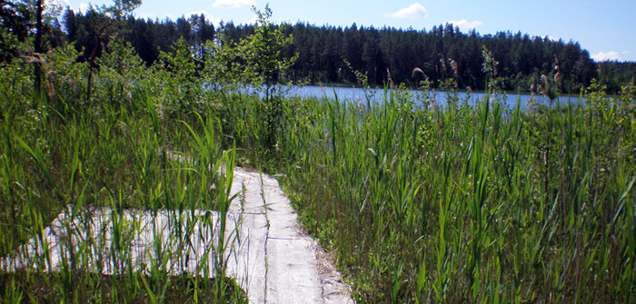 Pažintinis takas tęsiasi apie 2,6 km. Čia susipažinsite su Labanoro girios, pelkių, ežerų ekosistemomis, girioje aptinkamais Lietuvos Raudonosios knygos augalais ir gyvūnais. Šalia tako išvysite esančius pilkapius.