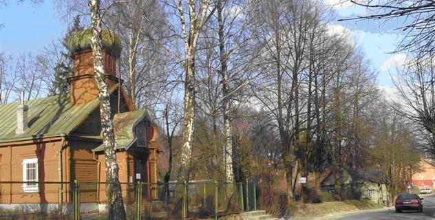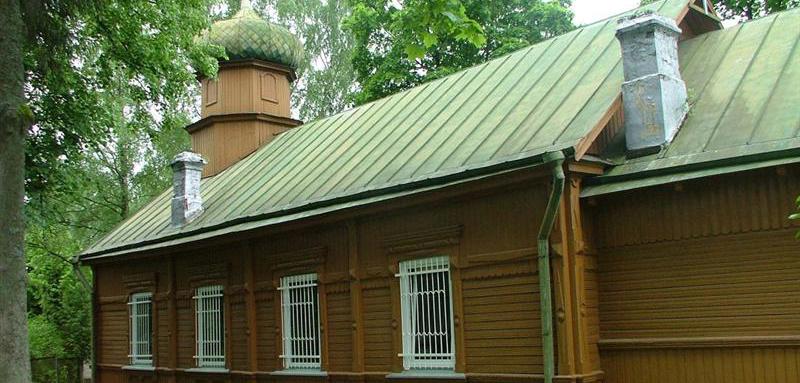 Stačiatikių bendruomenės istorija prasidėjo nuo reguliariai atvažiuojančio į geležinkelio stotį cerkvės-vagono, kuriame vykdavo pamaldos. Tačiau mūrinė cerkvė taip ir neatsirado, nors buvo pradėta statyti pagal A. Špakovskio 1911 m. projektą. Mūrai iškilo, tačiau 1915 m. cerkvė plytos išrintos parako gamyklai statyti. Neišlikusi mūrinė cerkvė buvo laisvesnės, mažiau kanoniškos išvaizdos, asimetriška, jos bokštos kylo ne pagrindinio fasado viduryje, bet jo kampe. Projektas saugomas archyve Sankt Peterburge.