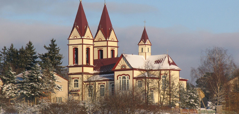 1907 m. patvirtintas A. Filipovičiaus-Duboviko naujos medinės bažnyčios projektas. 1908 m. atkurta parapija, pastatyta laikina, 1910–1913 m. – dabartinė bažnyčia (darbus prižiūrėjo inž. Bronislovas Malevskis). 1918 m. įkurtas "Ryto" draugijos skyrius, kuris rūpinosi Aukštadvaryje įsteigta progimnazija. Kunigas Kazimieras Trimonis 1937 m. pastatė parapijos namus. Bažnyčia istoristinė, turi neogotikos elementų, lotyniško kryžiaus plano, dvibokštė, su trisiene apside ir priestatu prie jos. Navos ir transepto sankryžoje – bokštelis. Vidus 3 navų. Šventoriaus tvora medinių statinių.