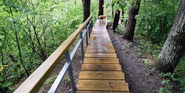 Netoli Karmazinų pilkapyno už Purvės rėvos pamatysite ir plačiausią Neries vietą – čia upės plotis siekia net 150 metrų! Dėl Purvės rėvos akmenų šniokštimo ir įspūdingo pločio Neris šioje vietoje atrodo ypač galinga. Tikimės, kad lankytojai, eidami pro Karmazinų pilkapyną, žvelgdami į mitologinius akmenis, pažins ir pajaus ir kitą – sakralųjį - Neries veidą. Ši upė vis dar pilna baltų mitologijos vaizdinių ir mena archainius protėvių tikėjimus, kai buvo tikima magiška vandens galia, padedančia vėlei pereiti į kitą pasaulį... Keliaudami taku, Jūs visą laiką būsite miške. Lankytojus kviečiame atkreipti dėmesį į medynų įvairovę – tamsų eglyną keis atkuriamaisiais kirtimais ugdomas miškas, pastarąjį - brandus šimtametis pušynas. Užlipus laiptais Neries šlaitu į viršų, Jus pasitiks mišrus miškas su galingais ąžuolais, išlakiomis pušimis, retomis guobomis ir žmogaus rankų nepaliestu juodalksnynu. Čia augančių ąžuolų vidutinis amžius siekia 160, pušų – 120, juodalksnių – 80 metų. Tokio brandumo miškų Lietuvoje labai reta. Žolinė augalija nenusileidžia medžiams – ištisos plantacijos į Lietuvos raudonąją knygą įtrauktų daugiamečių blizgių, kvapniųjų pakalnučių, kitų augalų.