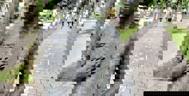 2017 m. atidengtas paminklas – skulptoriaus Kęstučio Dovydaičio bronzinė skulptūrinė kompozicija "Simboliai laike" – skirtas įamžinti kalbai ir žmogaus pažinimo keliui. Kompozicija sudaryta iš bronzinės mergaitės, rankose laikančios knygą, skulptūros ir šaligatvyje įspaustų jos pėdų–abėcėlės raidžių žymių.