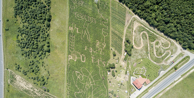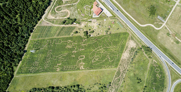 Kasmet labirinto tema ir motyvas keičiasi. 2018 kukurūzų labirinto tema: "Ei, koks Tavo vardas?". Dydis – 3 ha, takelių ilgis – 3 km.