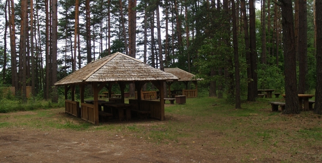 Stovyklavietė įrengta pietinėje Šakarvų ežero pakrantėje, miške, šalia kelio Palūšė - Kaltanėnai. Lankytojų patogumui stovyklavietėje įrengtos pavėsinės, lauko stalai su suolais, laužavietės, lauko tualetai, persirengimo kabina, informacinis stendas. Stovyklavietė pasiekiama automobiliu.